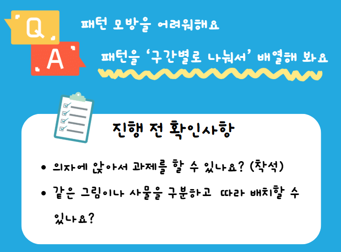 간단해 보이지만, 아이에게는 생각보다 어려울 수 있습니다. 그래서 오늘은 ‘패턴 모방’ 활동을 집에서 쉽게 도와주는 방법을 알려드리겠습니다.